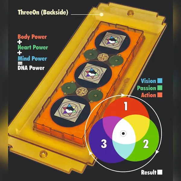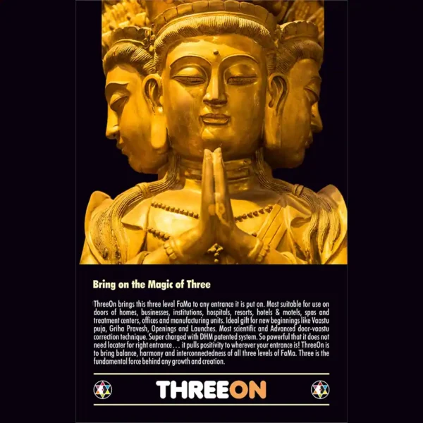 Super charged with DHM patented system. So powerful that it does not need locater for right entrance… it pulls positivity to wherever your entrance is! ThreeOn is to bring balance, harmony and interconnectedness of all three levels of FaMa. Three is is the fundamental force behind any growth and creation.